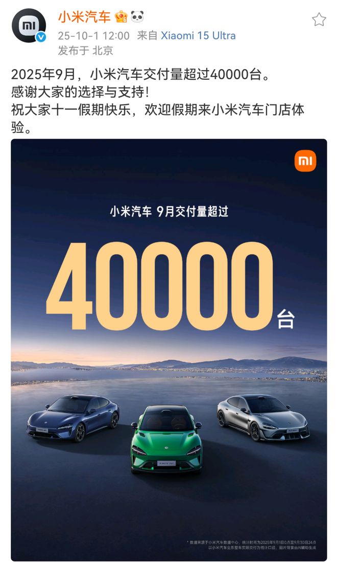 網紅車企小米的9月交付量首次超4萬輛,但小米創始人、董事長兼CEO雷軍,首次未在其個人微博上第一時間轉發相關信息和評論。