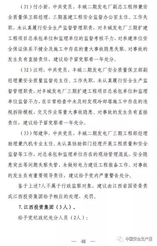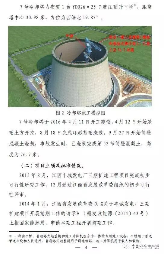 2016年11月24日,豐城發電廠三期擴建工程發生冷卻塔施工平台坍塌特別重大事故,造成73人死亡、2人受傷,直接經濟損失10197.2萬元。