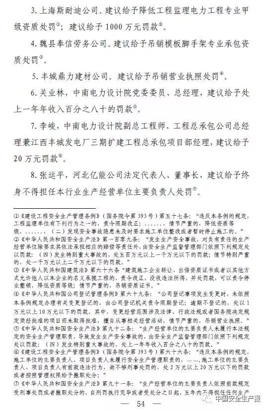 2017年9月15日,經國務院調查組公布調查結果,司法機關擬追究刑事責任人員31人,其中工程總承包方中南電力設計院3人、施工單位河北億能公司6人、監理單位上海斯耐迪公司3人和魏縣奉信勞務公司1人,其他人員18人。